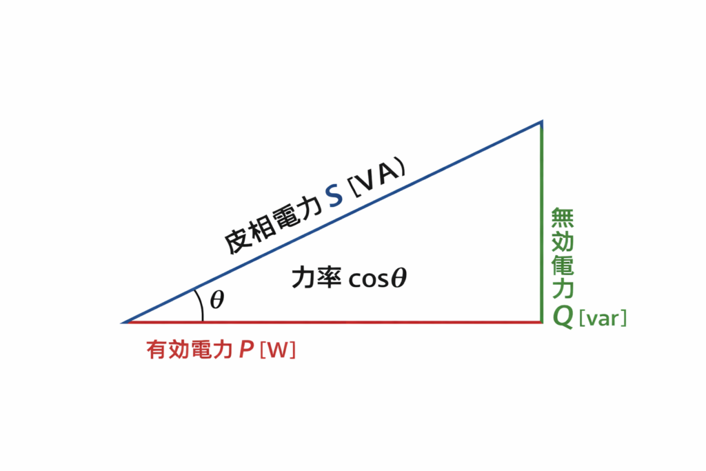 | 力率 | cosθ | – | 利用効率 |